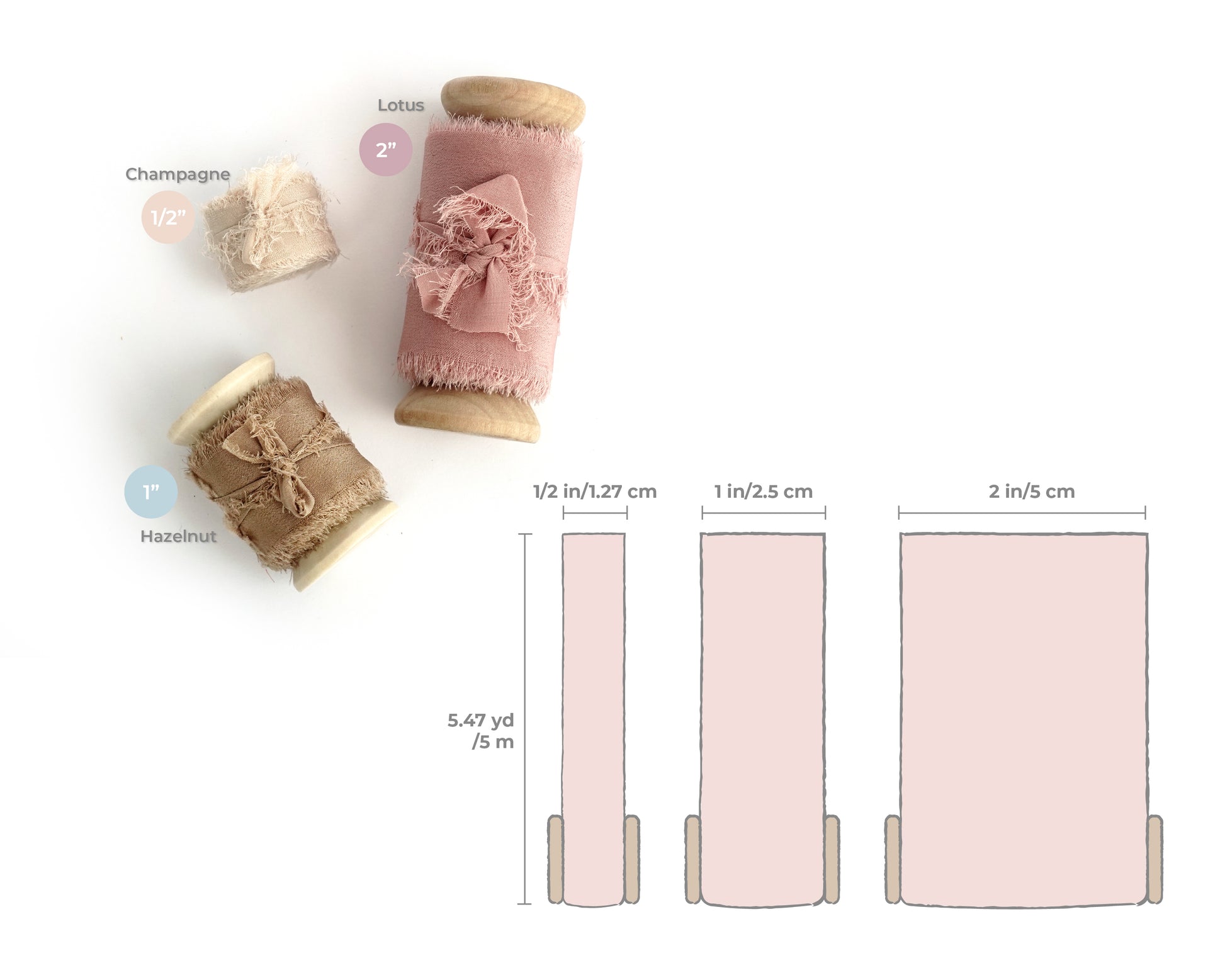 100% Hand Made Silk Crepe Ribbon. Includes one ribbon on wooden spool